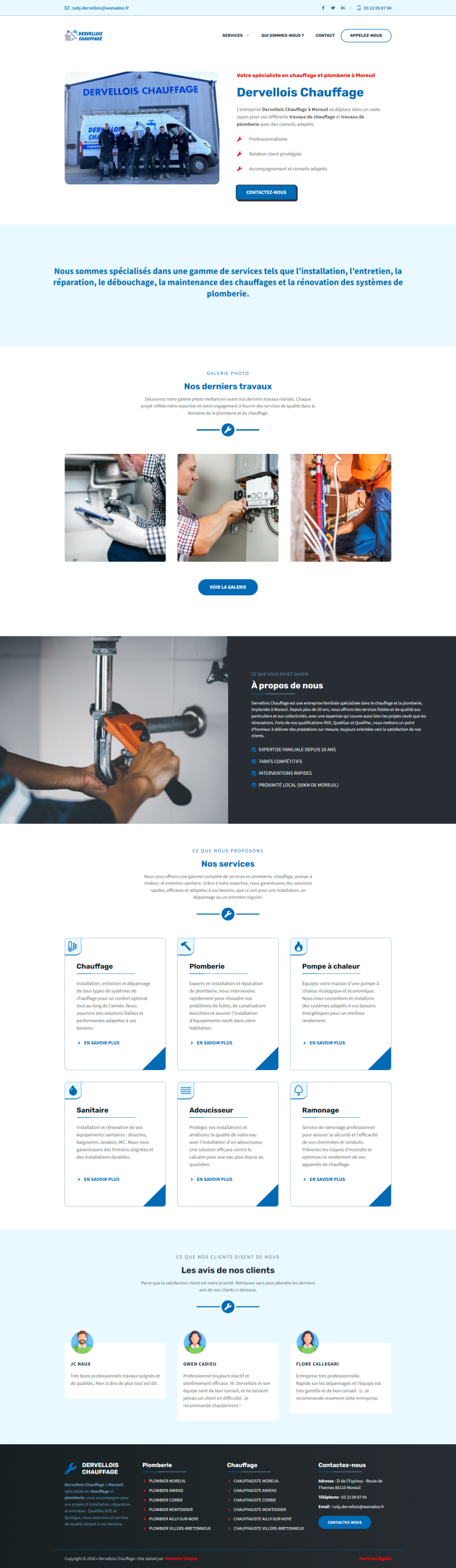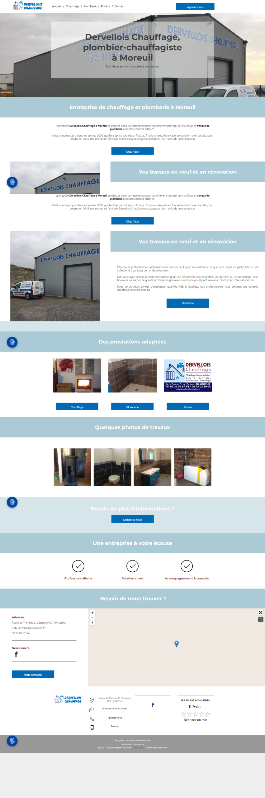 Dervellois Chauffage, entreprise familiale de plomberie et chauffage à Moreuil, avait tout ce qu’il faut pour convaincre – sauf un site à la hauteur. Un site SoLocal vieillissant, des agences à 6 000 € avec 5 ans d’abonnement, et au bout du chemin, un site qui génère vraiment des contacts.